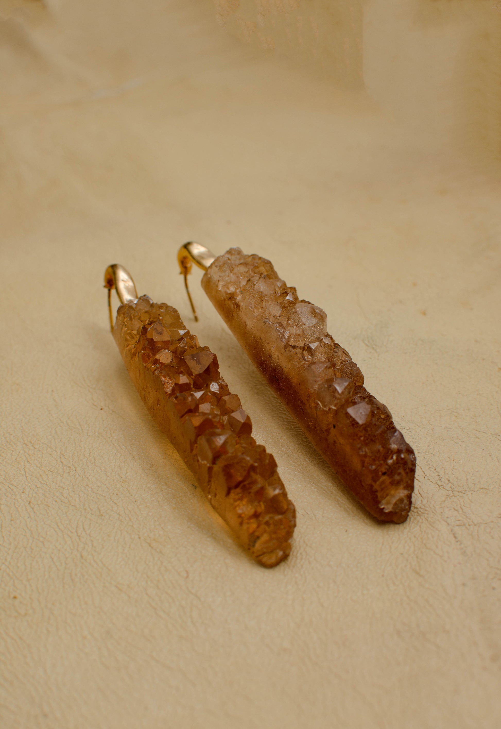 Resin and powder quartz / 24 k Gold Plated sterling silver